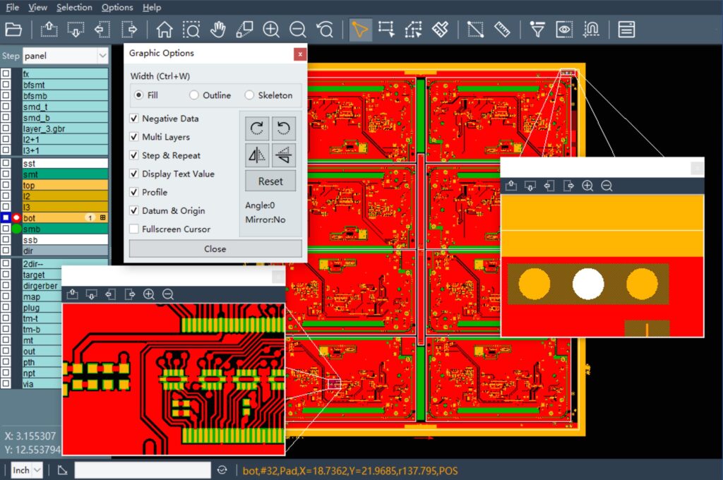 OpenCAM是由無錫東領智能科技股份有限公司開發的一款輕量級PCB CAM圖形查看器?;贑++開發,具有超高的圖形顯示效率,完全支持ODB++8.1格式。